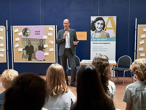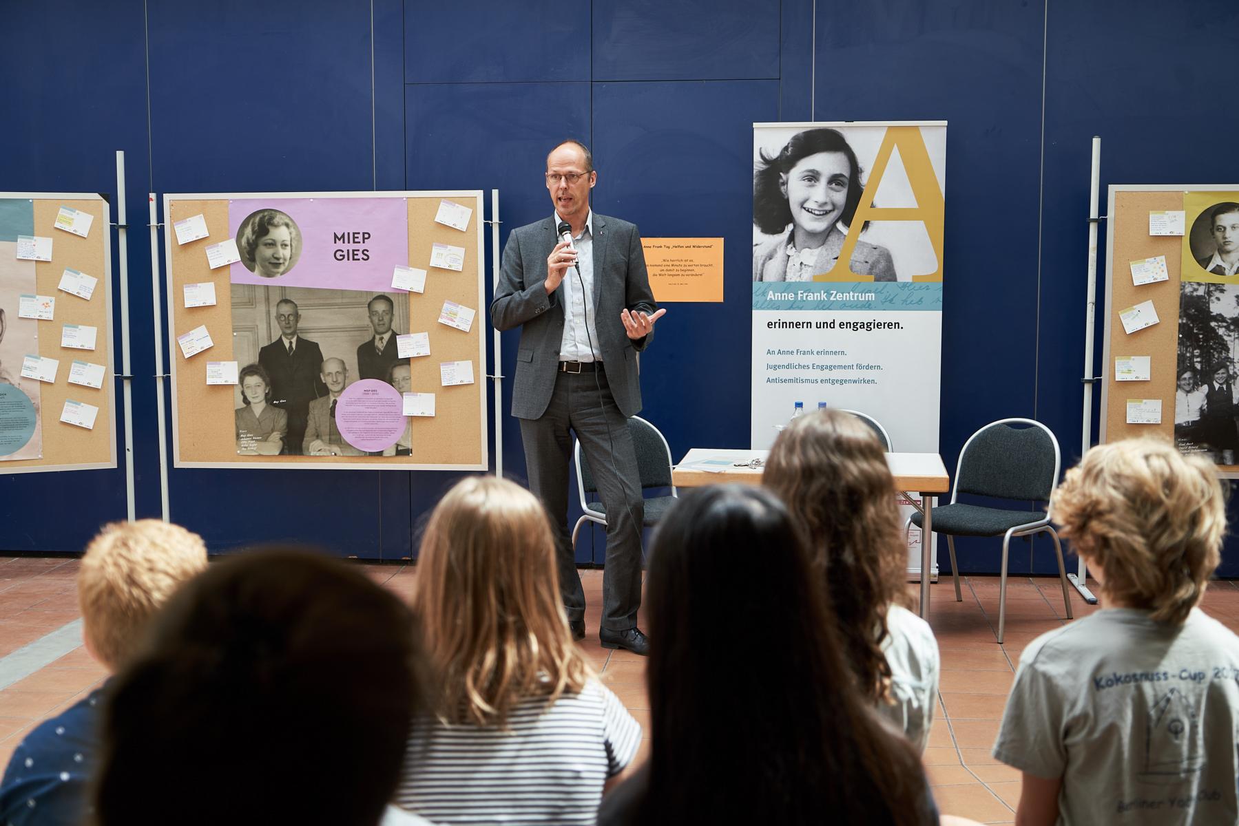 Am Anne Frank Tag 2018 »Helfen und Widerstand« haben sich 150 Schulen beteiligt. Mehr als 20.000 Schülerinnen und Schüler setzten am Aktionstag am 12. Juni ein klares Zeichen – gegen Antisemitismus und Rassismus und für eine demokratische Gesellschaft. Dazu erinnerten sie an mutige Menschen, die sich der Judenverfolgung der Nationalsozialisten widersetzten und beschäftigten sich auf vielfältige Arten mit dem Thema.