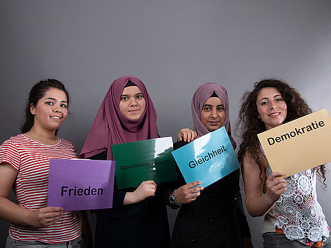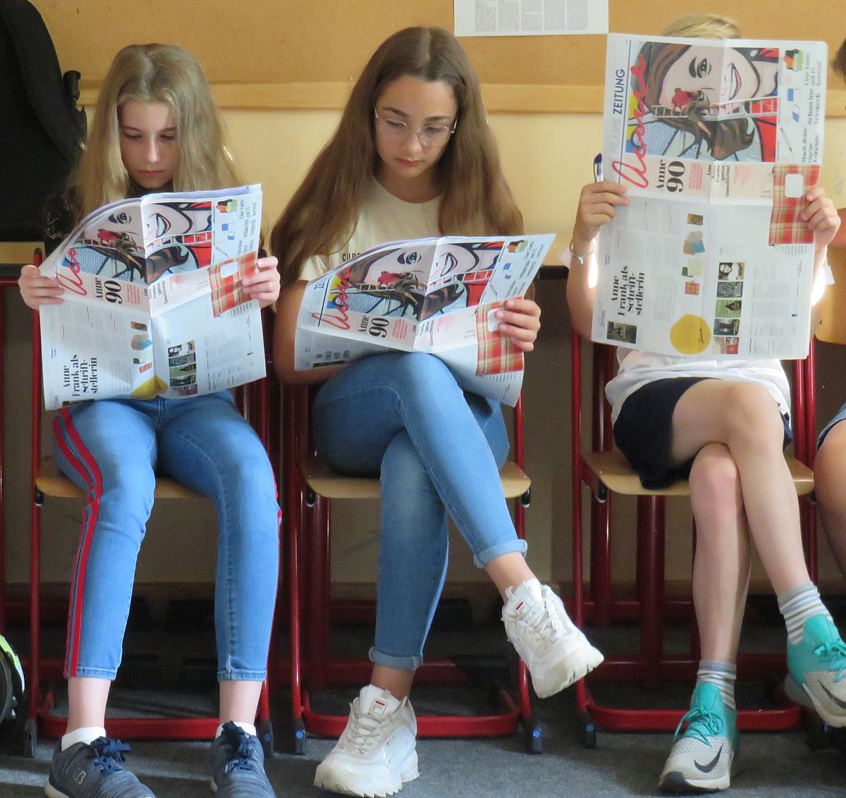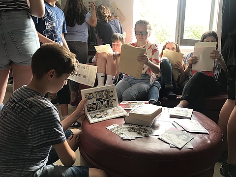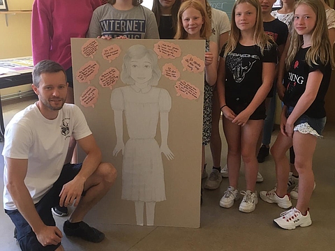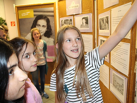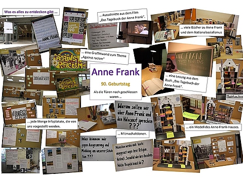 Das Anne Frank Zentrum stellte allen teilnehmenden Schulen im Vorfeld Lernmaterialien zu Anne Franks Leben zur Verfügung. Dazu gehörten eine großformatige Plakatausstellung und die 16-seitige Anne Frank Zeitung mit Arbeitsaufgaben und Lehrkräfteleitfaden sowie Postkarten mit Fragen, die zum Nachdenken und Diskutieren anregen.