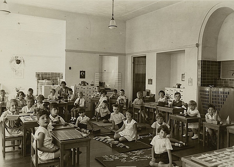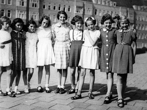 In Amsterdam wohnt Anne mit ihrer Familie am Merwedeplein. An diesem Platz leben viele jüdische Emigrant*innen aus Deutschland. Anne und Margot gehen in den Kindergarten und in die Schule. Beide sprechen Niederländisch und Deutsch. Otto leitet die Firma Opekta. Sie stellt ein Bindemittel zum Kochen von Marmelade her. In Deutschland spitzt sich die Lage für Jüdinnen und Juden durch die antisemitische Verfolgung der Nationalsozialisten weiter zu. Die Pogrome im November 1938 sind ein vorläufiger schrecklicher Höhepunkt: Mehr als hundert Juden werden ermordet und viele Synagogen in Deutschland zerstört.