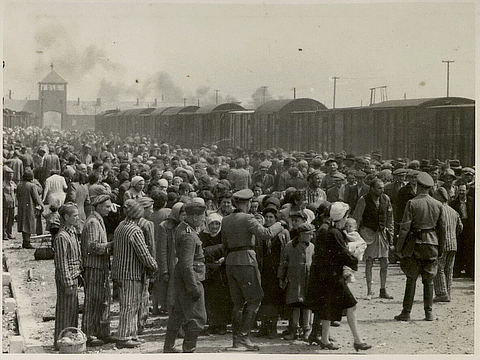 A) Schau Dir dieses Foto von Auschwitz an. Was kannst Du erkennen?